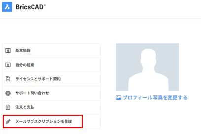 - 画面左側のメニューから[メールサブスクリプションを管理]を選択します。