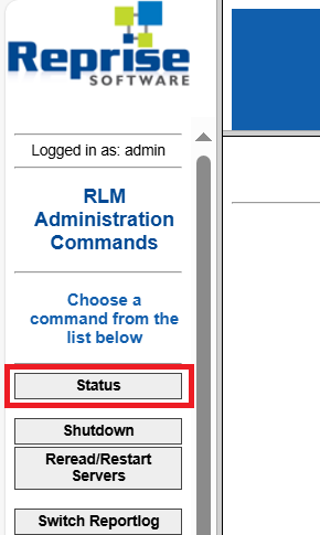 Alfatech製品:[A]-[Alfatech]-[Reprise ライセンスサーバー管理] - ブラウザ左ペインから[Status]を選択し、サーバーのステータス画面を表示します。