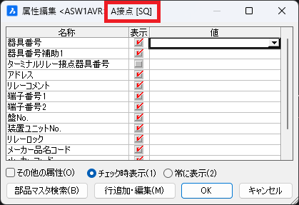 シンボルをダブルクリックして属性編集を実行した際、ダイアログ上部にシンボル種別が表示されます。